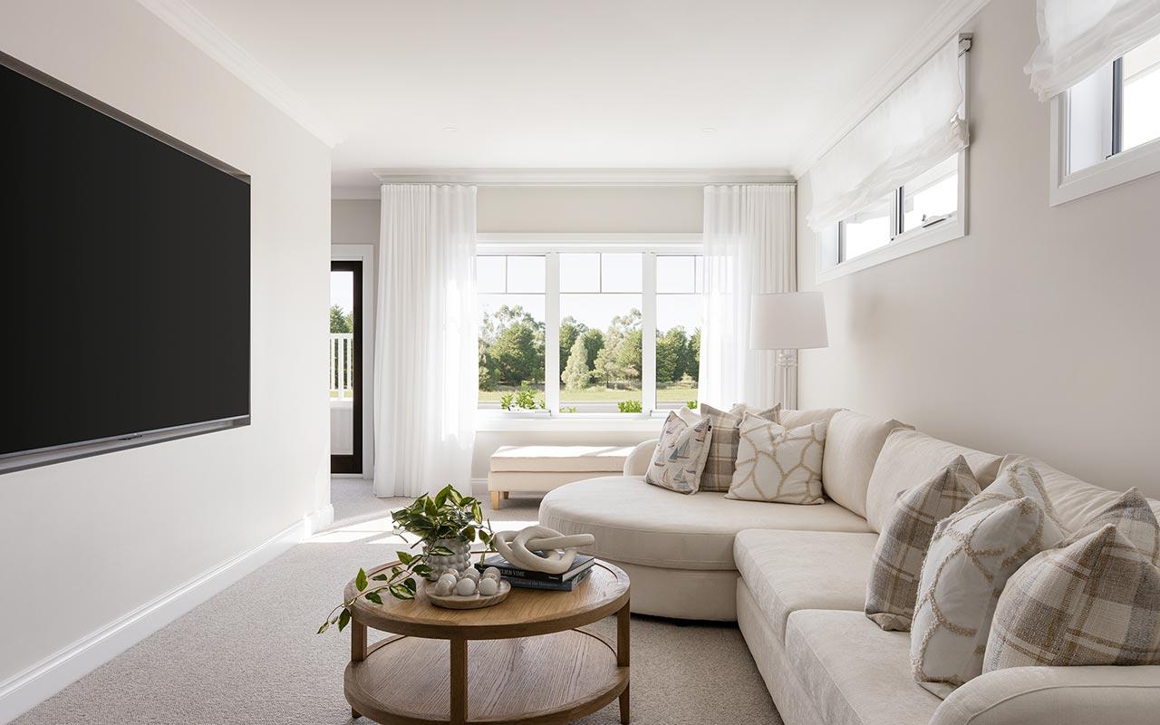 With expansive voids and open spaces, the Flinders creates an airy, connected feel perfect for modern family living. The ground floor features an expansive layout with a luxurious master suite at the front of the home, a gourmet kitchen with a scullery, open-plan living and dining areas, a theatre room, and seamless indoor-outdoor flow for entertaining. The upper level of this home offers three more bedrooms including additional master, a generous rumpus room and a dedicated study.
